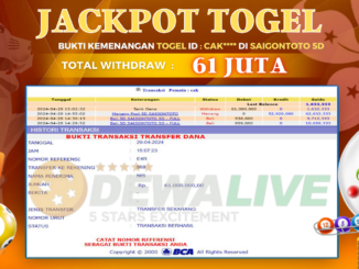 DEWALIVE JACKPOT TOGEL di SAIGONTOTO 5D Rp 61.000.000,- LUNAS