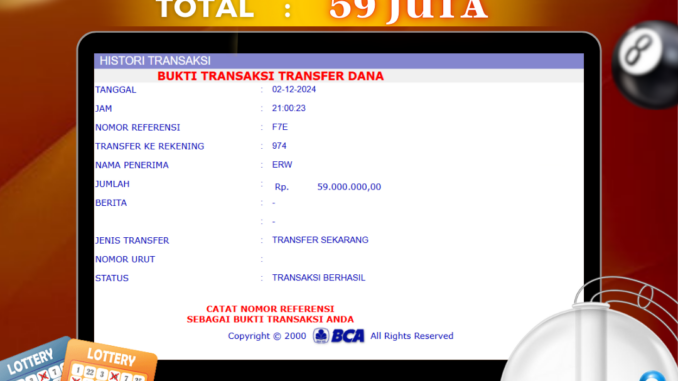 MEMBER DEWALIVE MENERIMA PELUNASAN KEMENANGAN JACKPOT TOGEL DI JAKARTA 5D Rp 59.000.000,- LUNAS