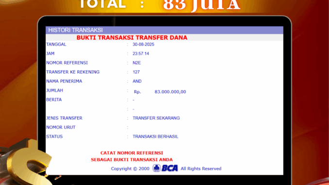Bukti transfer yang dapat anda lihat adalah bukti SAH / VALID yang langsung di dapatkan melalui bukti transaksi dari Bank yang digunakan untuk pengiriman dana pada rekening pemilik user id. Terima kasih kami sampaikan kepada para pengguna setia DEWALIVE yang telah menggunakan situs kami, sebagai Bandar Terpercaya yang pastinya membayar semua kemenangan member hingga lunas. Apakah DEWALIVE PENIPU ? Reputasi “DEWALIVE TERPERCAYA” sudah sangat melekat.