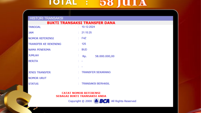 Bukti transfer yang dapat anda lihat adalah bukti SAH / VALID yang langsung di dapatkan melalui bukti transaksi dari Bank yang digunakan untuk pengiriman dana pada rekening pemilik user id. Terima kasih kami sampaikan kepada para pengguna setia DEWALIVE yang telah menggunakan situs kami, sebagai Bandar Terpercaya yang pastinya membayar semua kemenangan member hingga lunas. Apakah DEWALIVE PENIPU ? Reputasi “DEWALIVE TERPERCAYA” sudah sangat melekat.