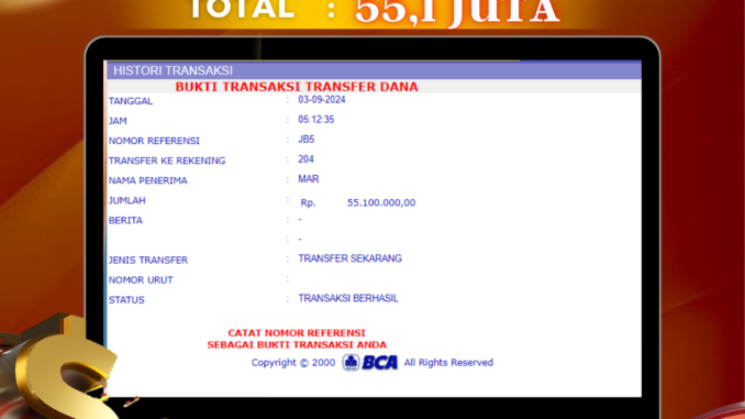 Bukti transfer yang dapat anda lihat adalah bukti SAH / VALID yang langsung di dapatkan melalui bukti transaksi dari Bank yang digunakan untuk pengiriman dana pada rekening pemilik user id. Terima kasih kami sampaikan kepada para pengguna setia DEWALIVE yang telah menggunakan situs kami, sebagai Bandar Terpercaya yang pastinya membayar semua kemenangan member hingga lunas. Apakah DEWALIVE PENIPU ? Reputasi “DEWALIVE TERPERCAYA” sudah sangat melekat.