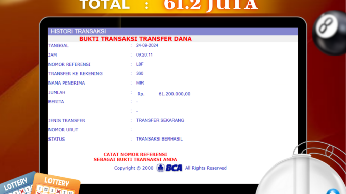 Bukti transfer yang dapat anda lihat adalah bukti SAH / VALID yang langsung di dapatkan melalui bukti transaksi dari Bank yang digunakan untuk pengiriman dana pada rekening pemilik user id. Terima kasih kami sampaikan kepada para pengguna setia DEWALIVE yang telah menggunakan situs kami, sebagai Bandar Terpercaya yang pastinya membayar semua kemenangan member hingga lunas. Apakah DEWALIVE PENIPU ? Reputasi “DEWALIVE TERPERCAYA” sudah sangat melekat.